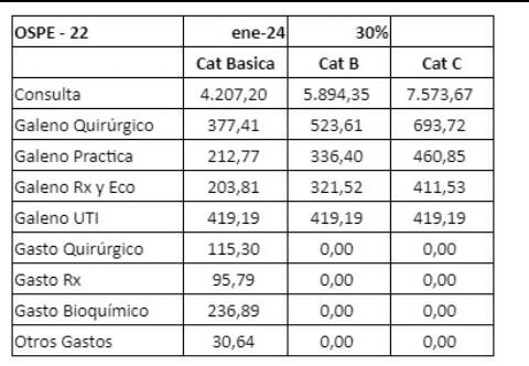 SeƱor Profesional : Informamos los nuevos valores de OSPE vigencia enero 2024.